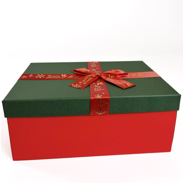 Новорічна картонна коробка двохкольорова з червоним бантом 23*16*9,5см "Merry Christmas"